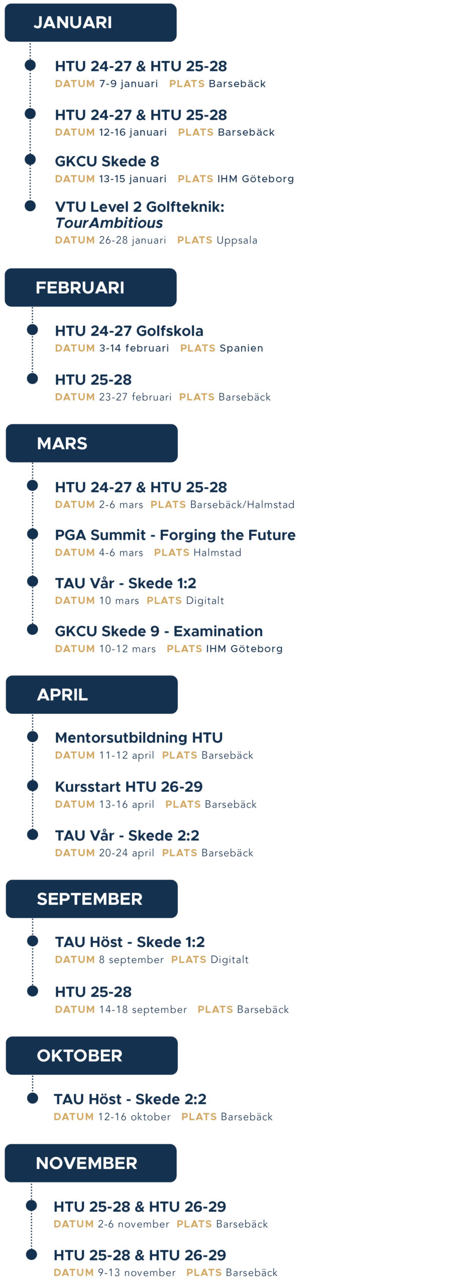 PGAs Utbildningskalender