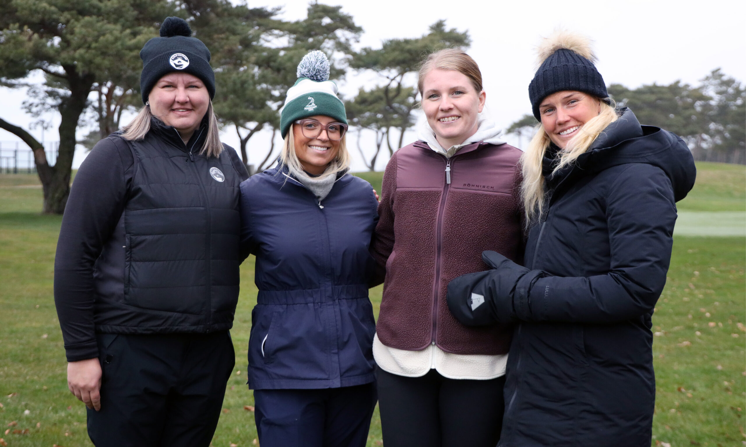 Från vänster: Madde Karlsson (Mjölby GK), Ella Melin (Göteborgs GK), Isabelle Johansson (Upsala GK), Anna M Hedlund (Allerum GK). Isabelle Falk (Hills Golf & Sports Club) saknas på bilden.